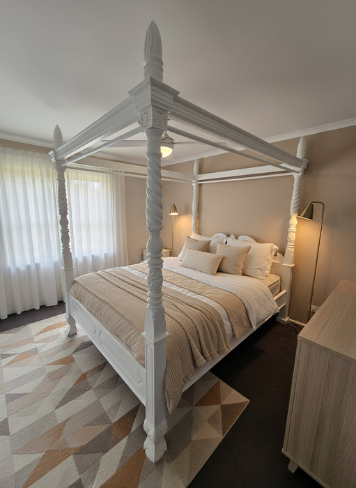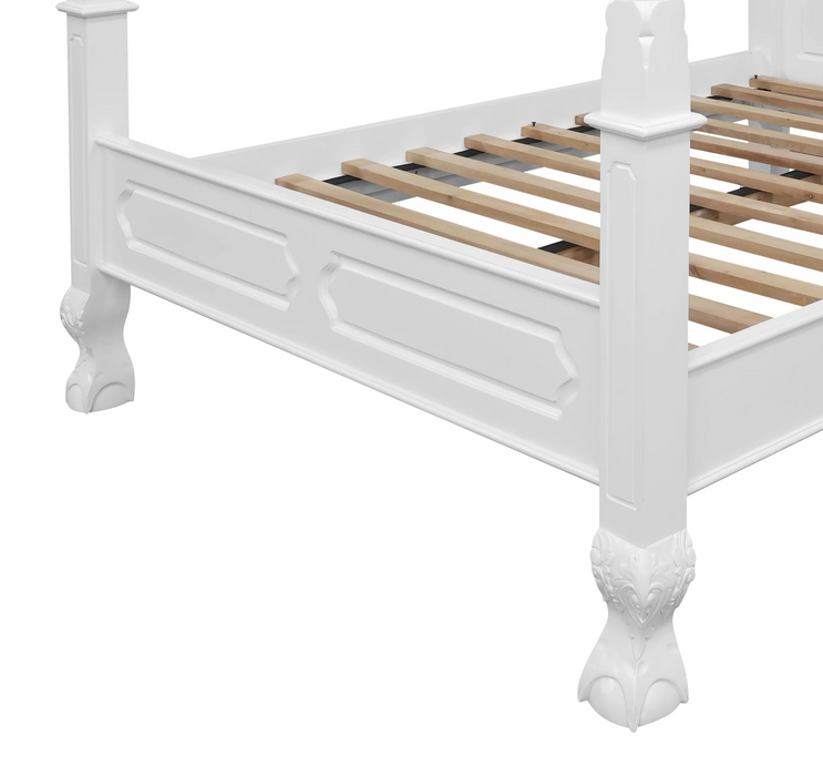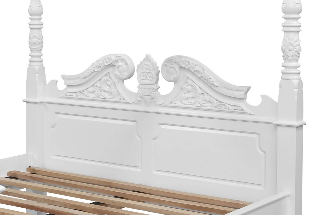 Indulge in luxury with the exquisite craftsmanship of this hand-carved bed. The intricate carvings add a touch of elegance to any room, capturing the essence of opulent design.