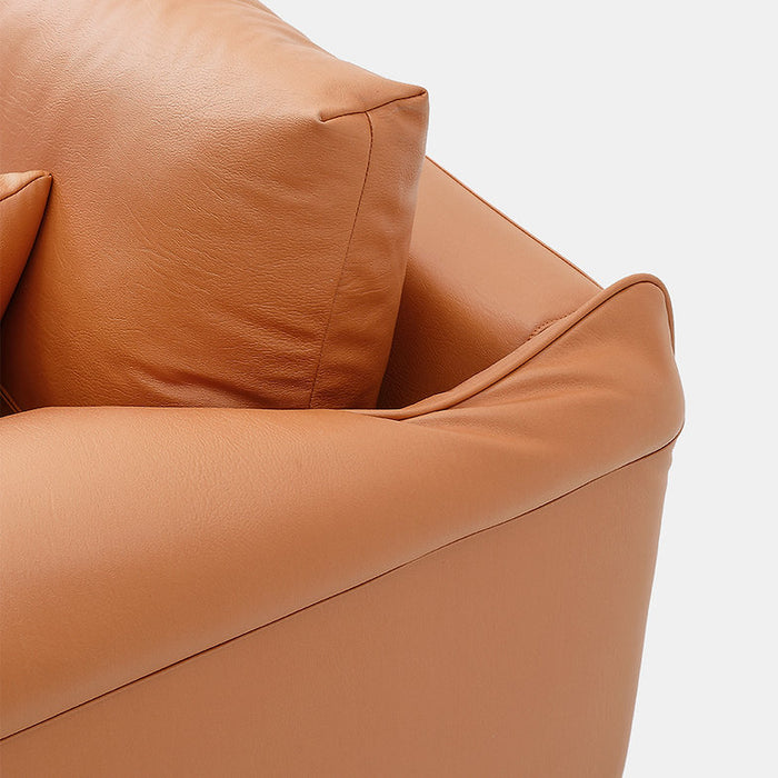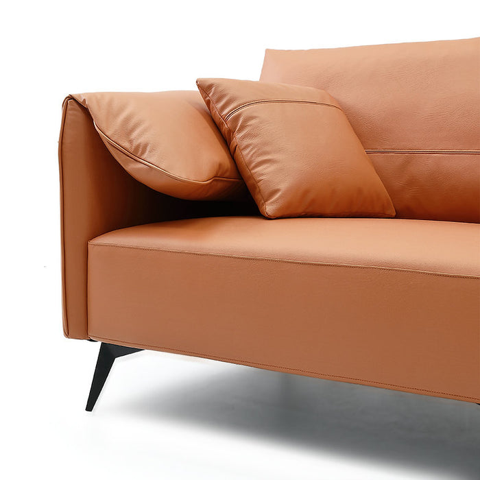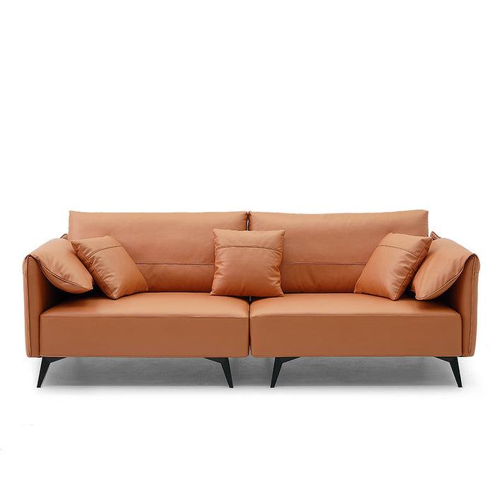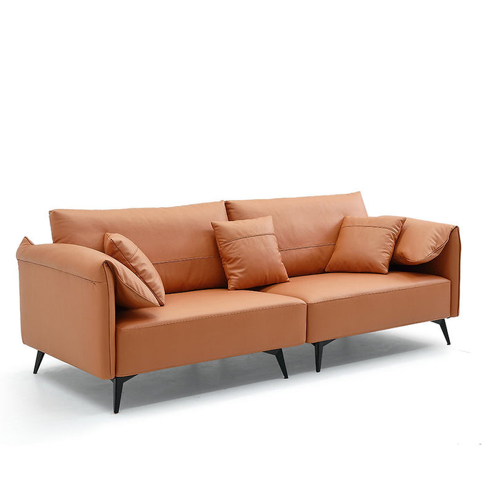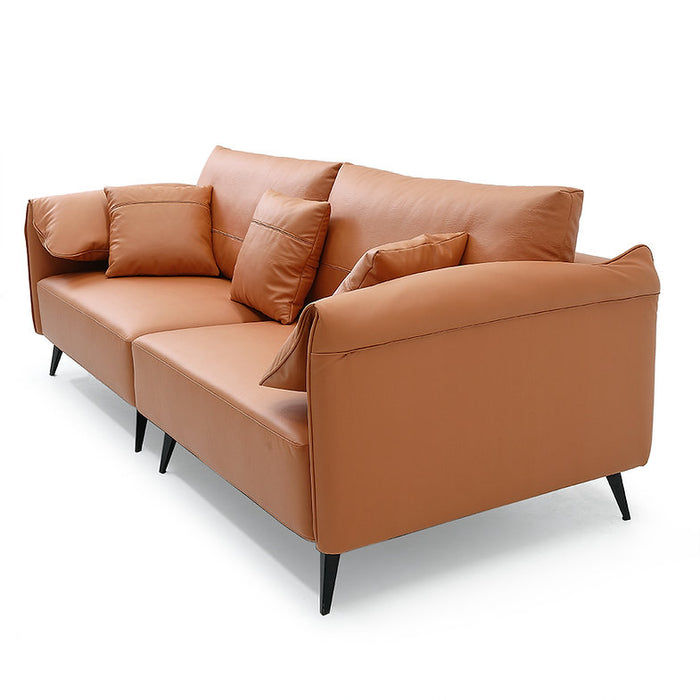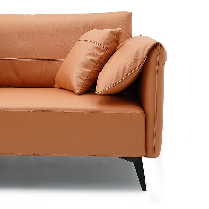 - With its minimalist style, the leatheraire fabric and high density foam filled cushion and three additional pillows provide snuggly comfort that you and your family will love.
