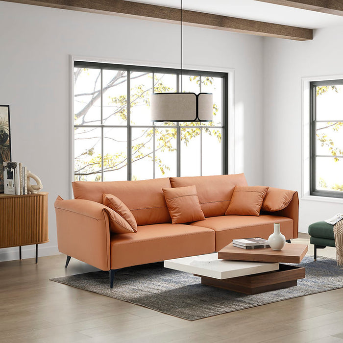 Minimalist style sleek design smooth curves Featuring elegant lines and a sleek design, this 3-seater sofa will add a touch of luxury to any room. With its minimalist construction and smooth curves, it offers both style and comfort. Its timeless look will complement any decor, making it a versatile addition to your home.