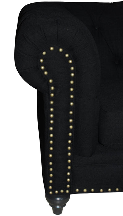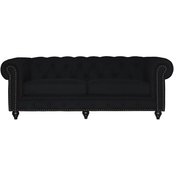This Louis 3-seater sofa adds comfort and sophistication to your home decor. Featuring brass studding and soft linen fabric for a warm and textured look, it can seat up to three people and has an extra foot for support. Available in 2 seater and armchair.