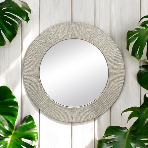 In stock Descriptions Made from resin frame and glass Natural, textured frame that has a mosaic-like appearance Brings coastal and organic fee...