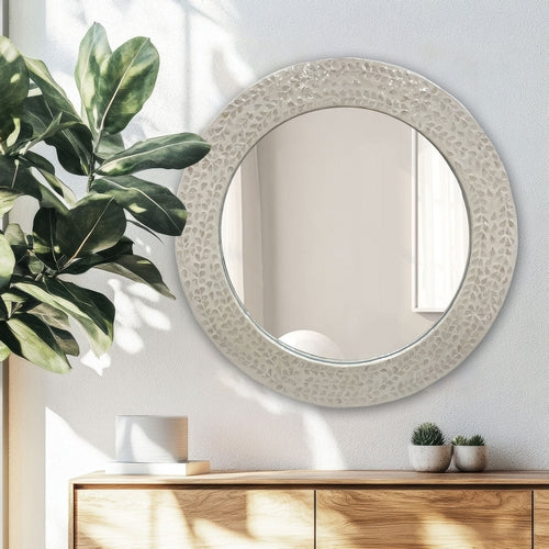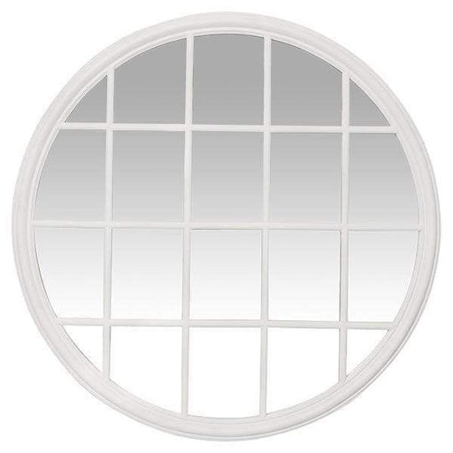 In stock The Chloe White Round Paned Mirror features a round shape with pane details, ideal for adding elegance and focus above furniture like sid...