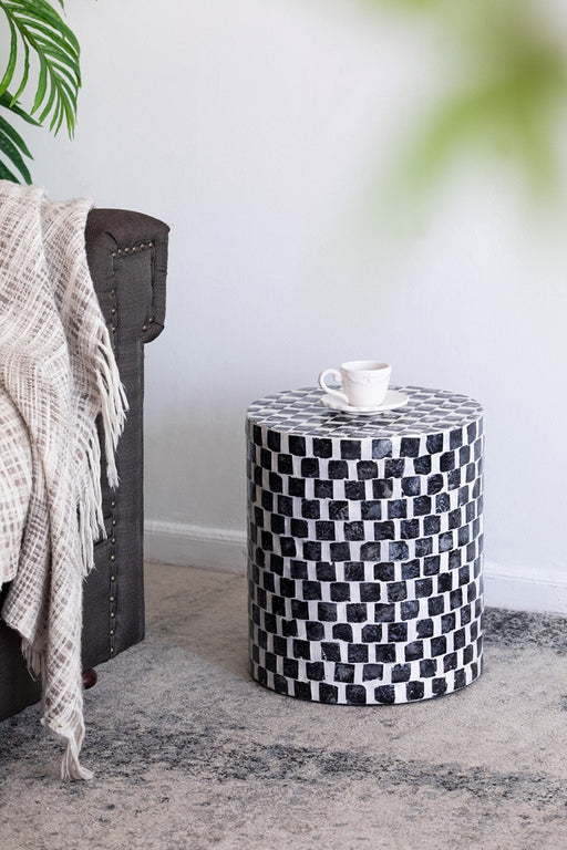 Features Clean design with beautiful black inlaid Capiz accenting white frame. Cylindrical form with geometric aesthetics, Crafted from engineered...