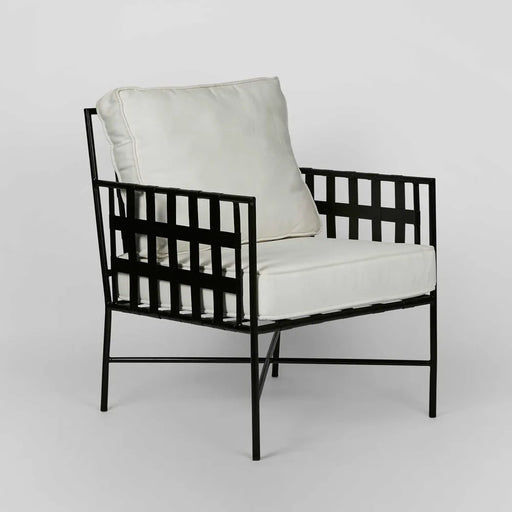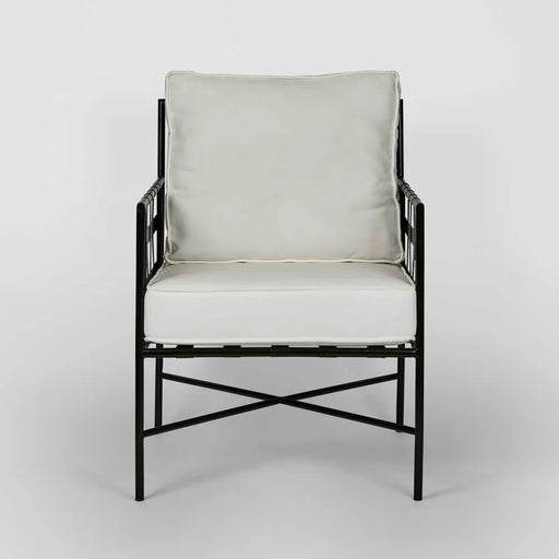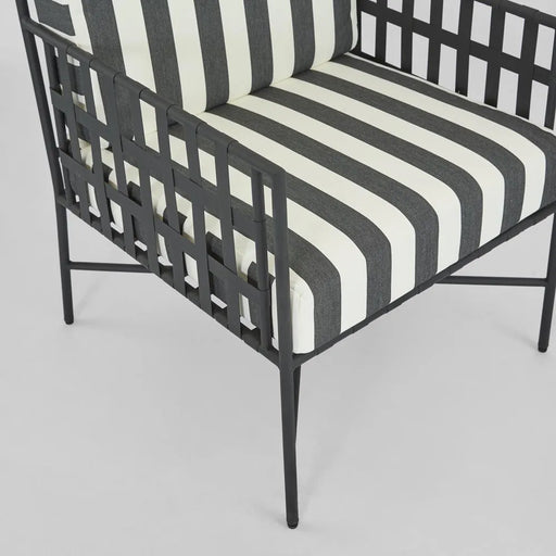 View full detailsSheffield Arm Chair Outdoor Iron B/W Stripe Cushions