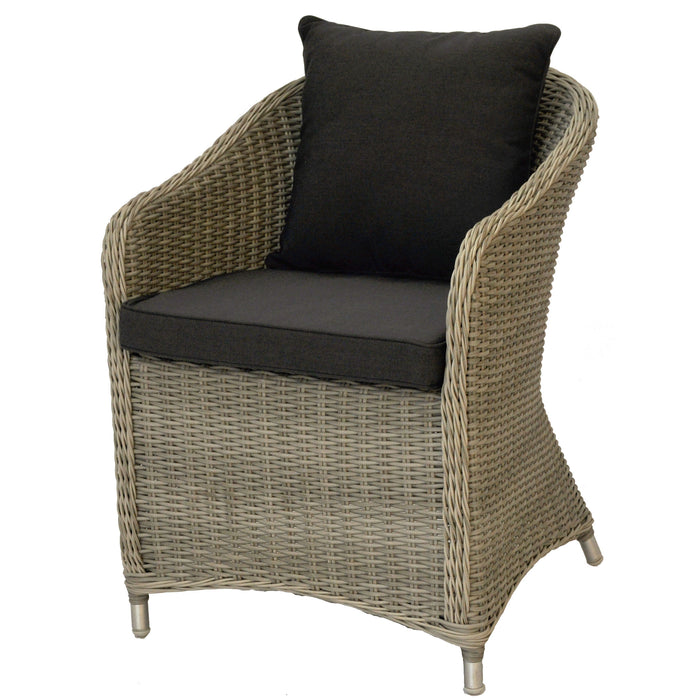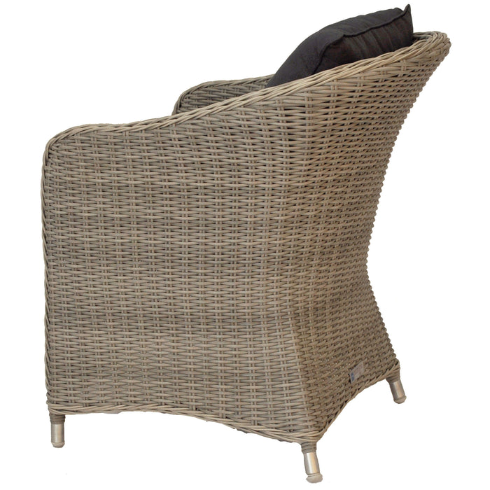 The Marsden is built to last, featuring a powder-coated aluminium frame that is covered with UV-stabilised, weather-resistant resin. This makes it ideal for continuous outdoor use and able to withstand the elements. The cushions are also weather-resistant, but to prolong their life and maintain the set's appearance, it's recommended to bring them indoors or cover the set with a waterproof cover when not in use.