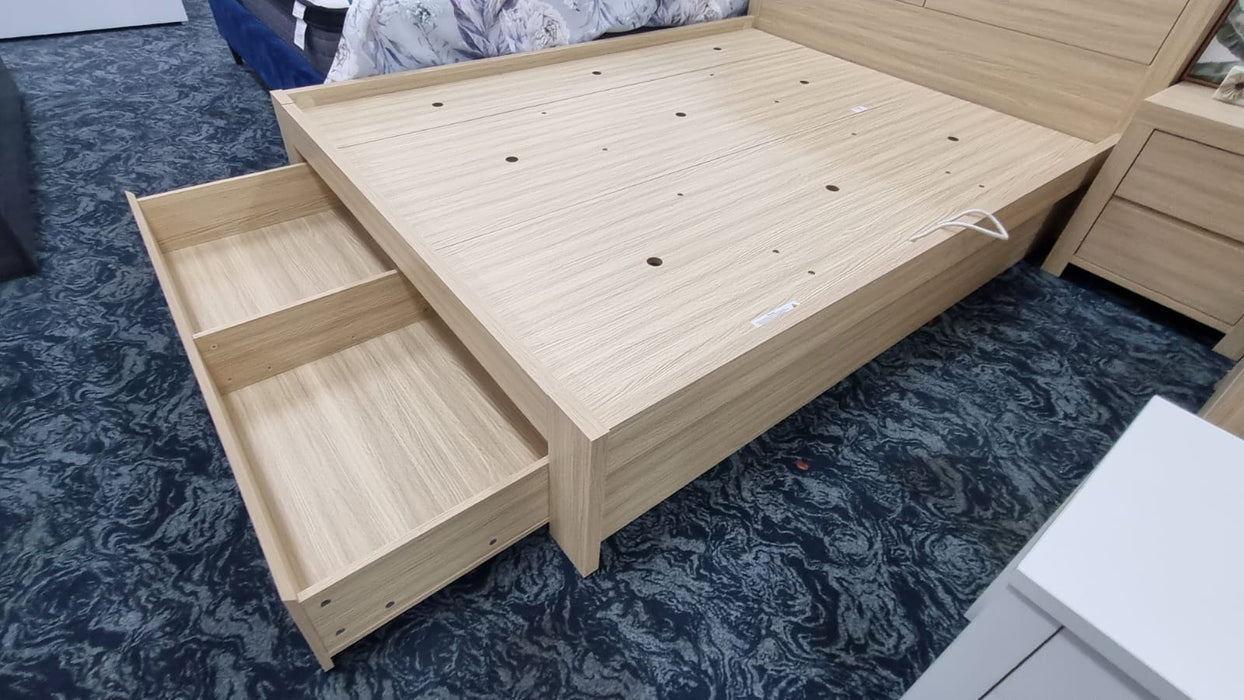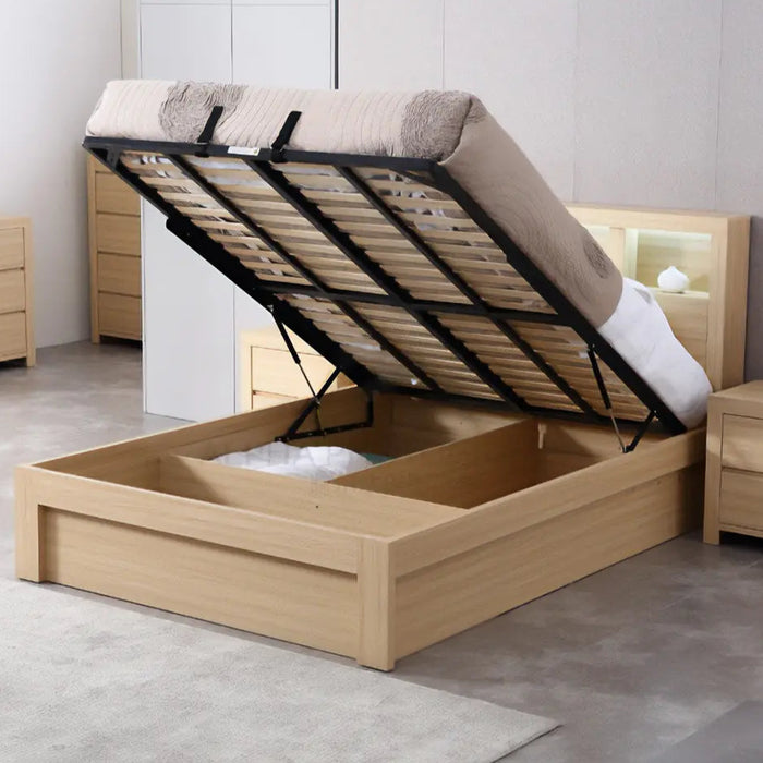 Marina Bed Frame with Gas Lift Storage, Alpine Oak