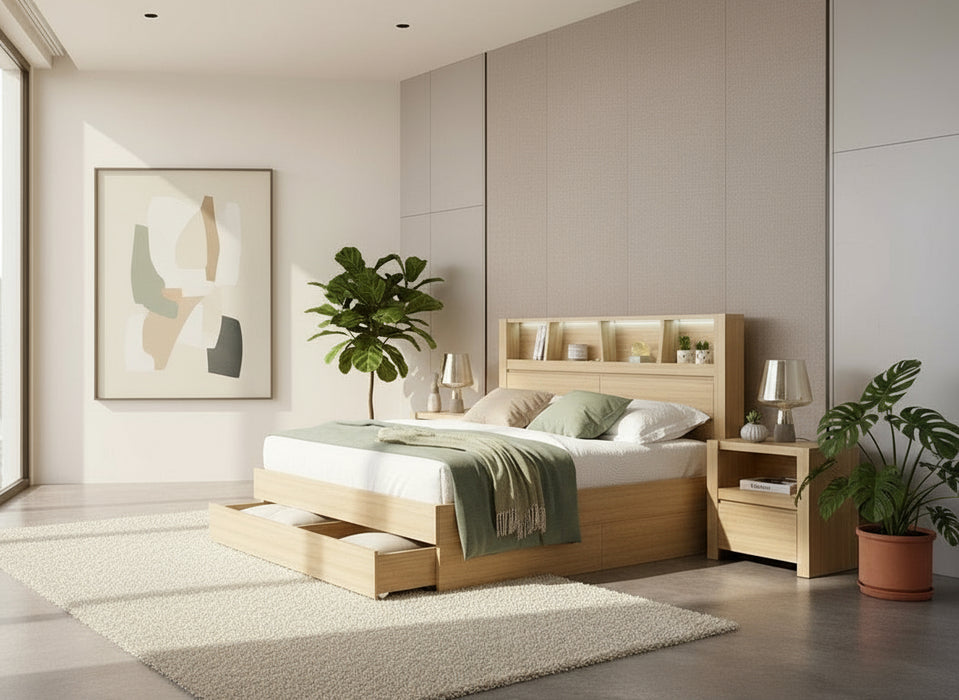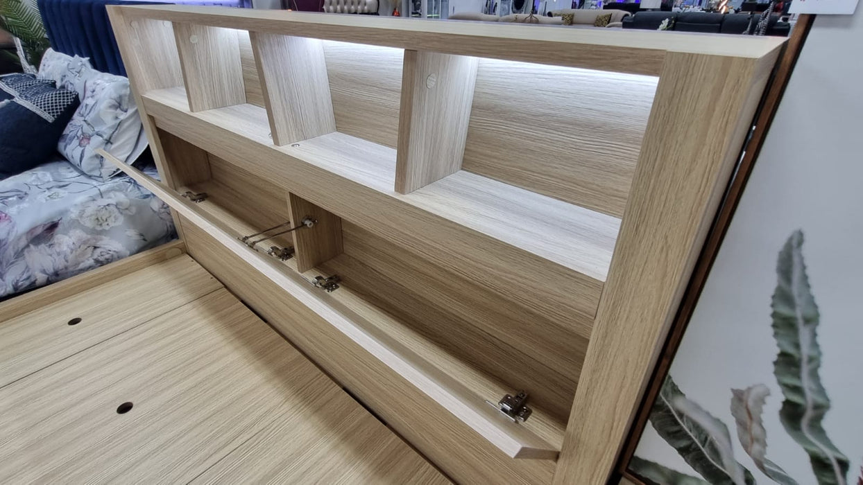 Sleek design allows you to display your books while its open door head board allows you to store your small belongings efficiently.