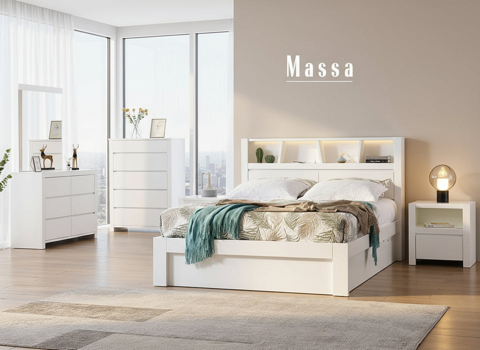 Sleek design allows you to display your books while its open door head board allows you to store your small belongings efficiently.