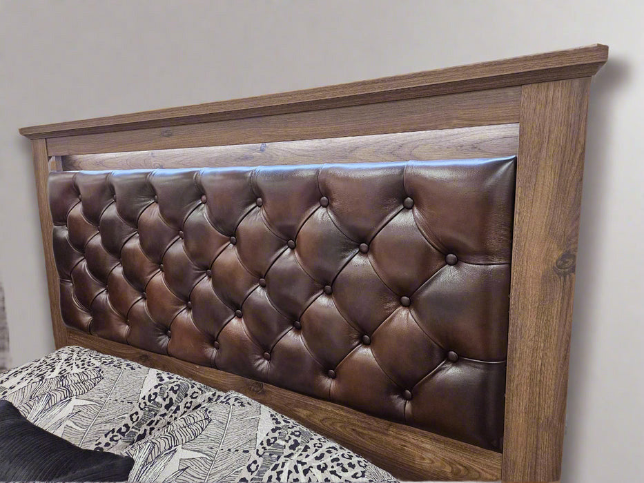 - High headboard with leather upholstery