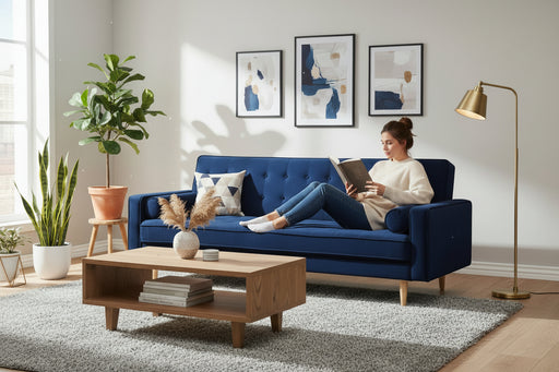 View full detailsSofia 3 Seater Sofa Bed in Velvet Fabric - Blue