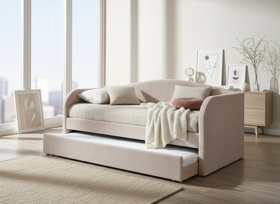 Charlotte Velvet Single Daybed with Trundle - Light Pink