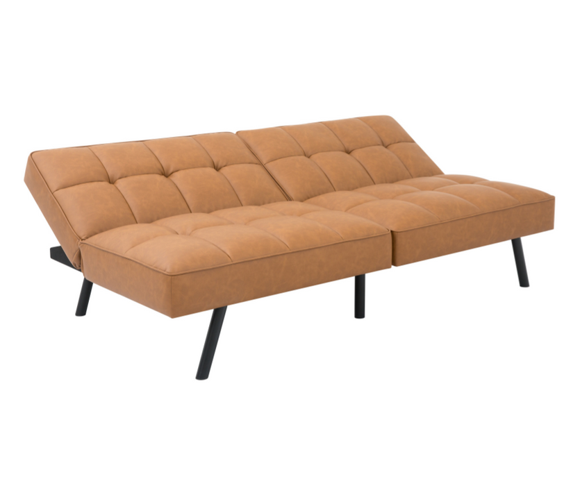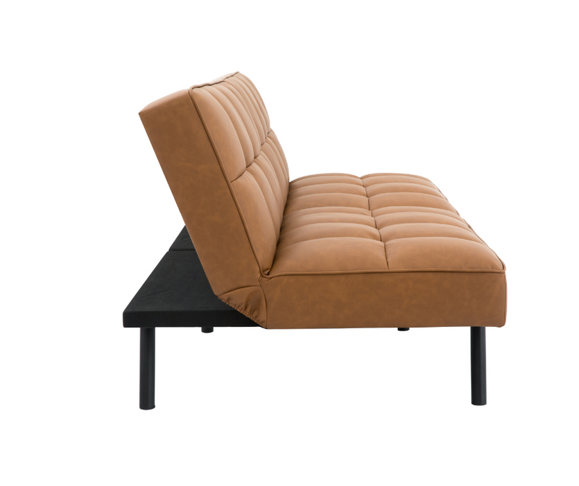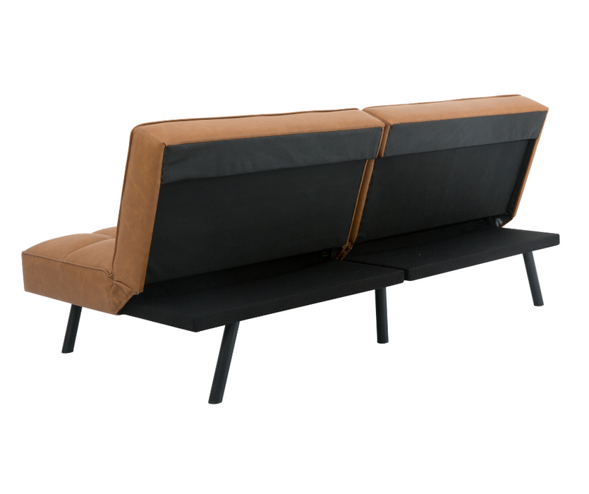 - Click clack sofa bed constructed with durable pine veneer and metal legs.