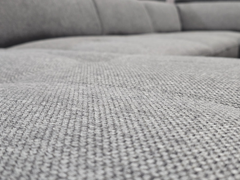 - Upholstered in storm grey 100% polyester fabric and timber construction