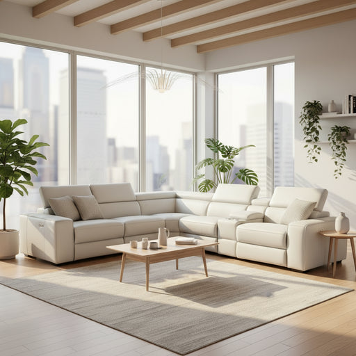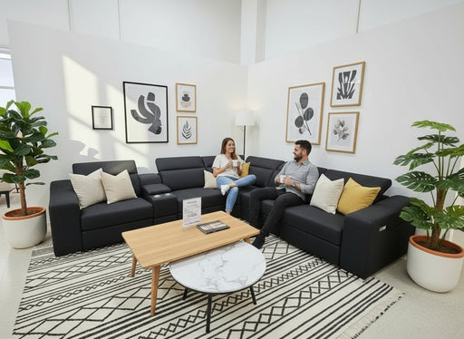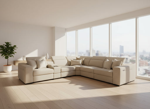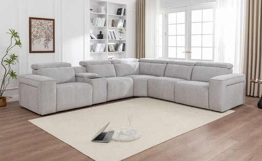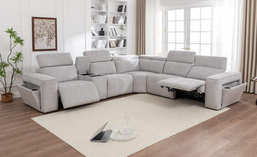Key Features The 6Pc suite consists of end electric recliners, 2x armless chairs, a corner seat and a console with built-in storage and tray Feat...