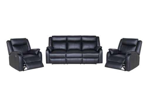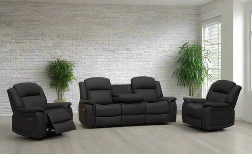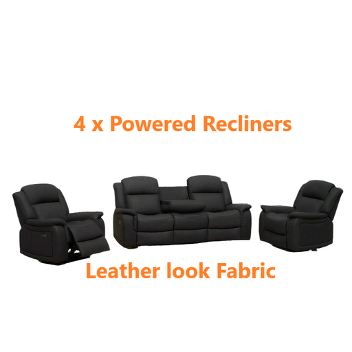 Brand: BR Collection Features Two stunning powered button armchair recliners and a three-seater piece. Upholstered in Leather look fabric in blac...