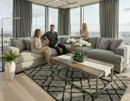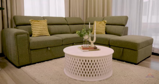 Material: Fabric sofas, such as polyester , boucle or velvet, offers a comfort and come in a variety of colours and patterns. Leather sofas provide a timeless, elegant look with impressive durability.