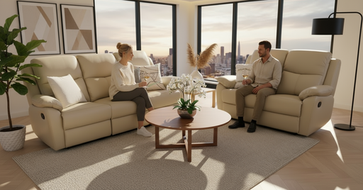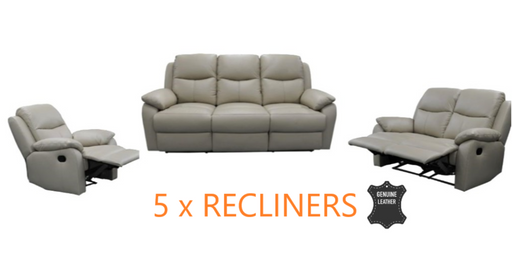 View full detailsSunrise 5 Seater Full Leather Manual Recliner Lounge Beige