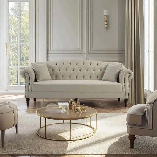 Charlotte 3 Seater Chesterfield Beige Sofa