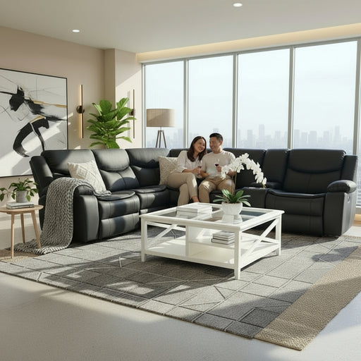 Specifications Design: Contemporary Colour: Charcoal Black 4 x End Manual Recliners Comfort Level: Comfortable Soft Foam Seat Material: High Den...