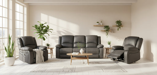 View full details5 Seater Cosmic Leather Manual Recliner Lounge Set - Charcoal