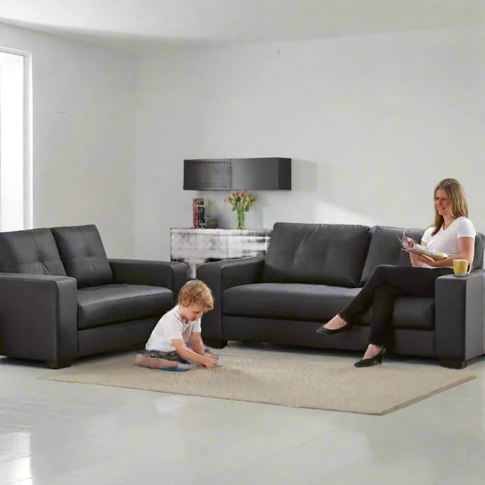 This 6 Seater Bianca 3 + 3 Seater PU Leather Sofa is the perfect fit for any space - with low arm rests and pocket springs that conform to your every move. Say goodbye to discomfort and hello to endless hours of coziness and companionship. Ideal for cozy apartments, granny flats, and tiny rooms.