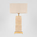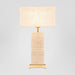 • Let our Ashley Table Lamp shed light on your impeccable taste and elevate your decor game. With its neutral shade casting a soft glow, this lamp boasts a rectangular base crafted from brass-finished iron and adorned with luxurious travertine accents, adding a touch of sophistication to any space. Whether illuminating your living room, bedroom, or home office, or gracing commercial spaces like hotel rooms and retail stores, the Ashley Lamp promises to elevate every corner with its refined allure and understated charm. As this is a natural material, each piece will have its own unique characteristics, making every item one of a kind.