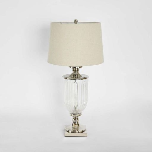 View full detailsBellevue Glass Nickel Lamp With Natural Linen Shade