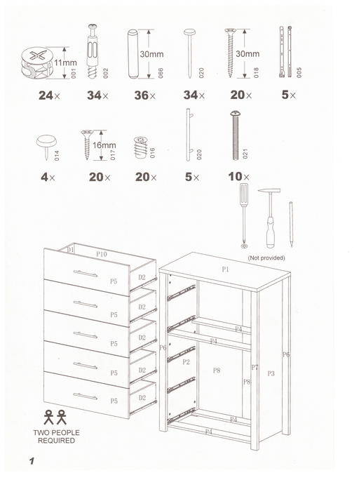 Specifications Colour: White 5 Drawers with metal runners Material: MDF, Metal Assembly Required: Yes Step by Step manual Instructions Weight...