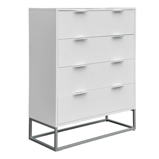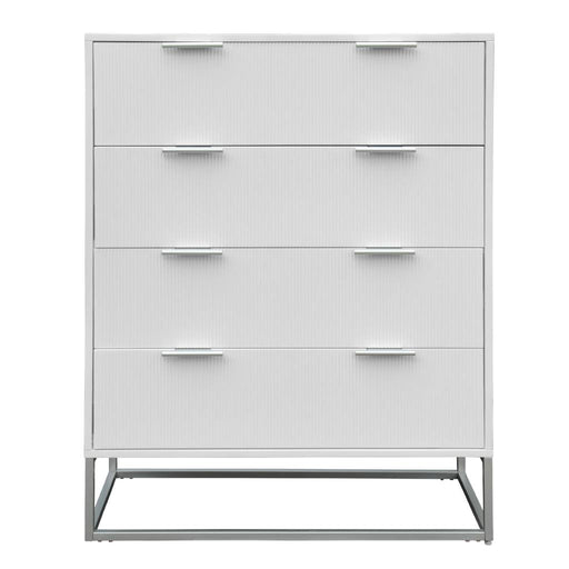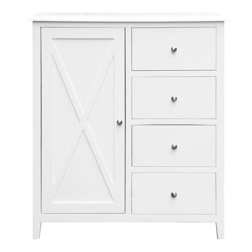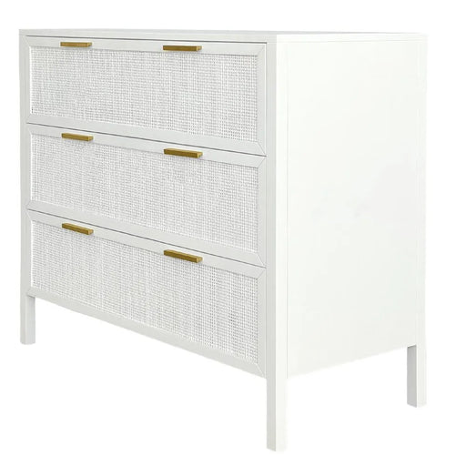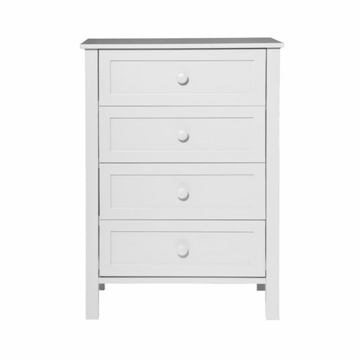 Specifications Simple and Hampton design inspired Sleek, compact construction using solid acacia wood with a white finish Four spacious drawers wi...