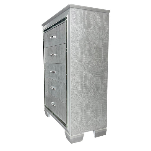View full detailsVeronica 5 Drawer Tallboy - Silver