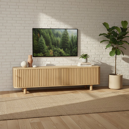 In stock / Leaves warehouse in 2 - 5 business days Features Crafted from solid sungkai wood in natural finish Fits large TV up to 95 Inch size T...