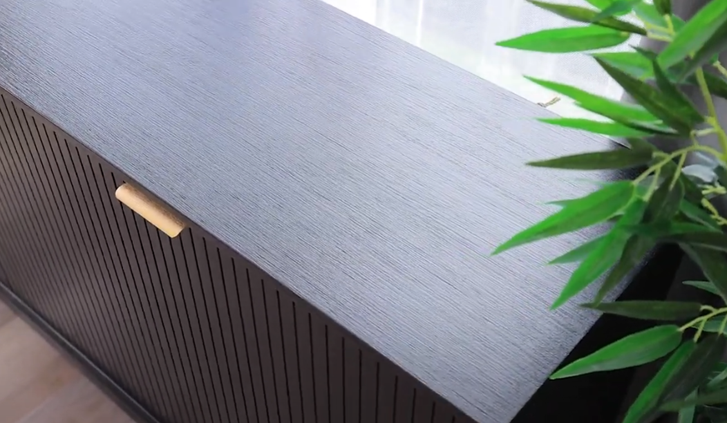 The sleek brushed finish and solid acacia wood bring a touch of sophistication to your living room, while the convenient storage drawer and open shelf provide versatile organization options. Rest assured, cable exit holes make for a seamless and clean entertainment setup.