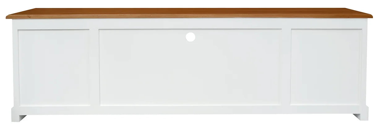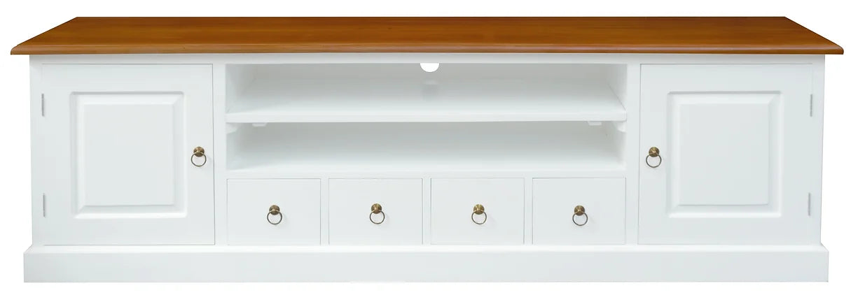 Crafted from the finest solid mahogany timber and adorned with classic brass handles, the Tasmania Entertainment Unit embodies the essence of timeless craftsmanship. This expansive piece, measuring 200.0 cm wide, 45.0 cm deep, and 60.0 cm high, offers a grand statement of style and utility. Its spacious dimensions are designed to accommodate all your media essentials, with internal drawers measuring 20.0 x 32.0 x 14.0 cm to organize gadgets, games, and more with ease. Ready to enhance your living space straight from the box, it requires no assembly and the nuanced White Caramel, ensuring a seamless match with your home's aesthetic.