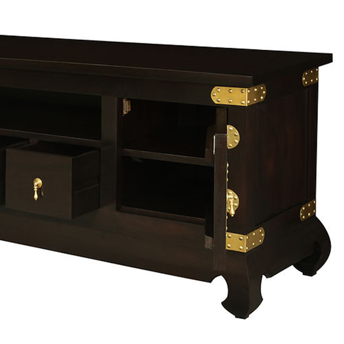 - Exquisite Finishes: An attractive piece of furniture that will be the envy of your guests, the Lilia Entertainment Unit features four drawers and 2 doors with sophisticated details like joinery, fluted trim, and brushed antique hardware.