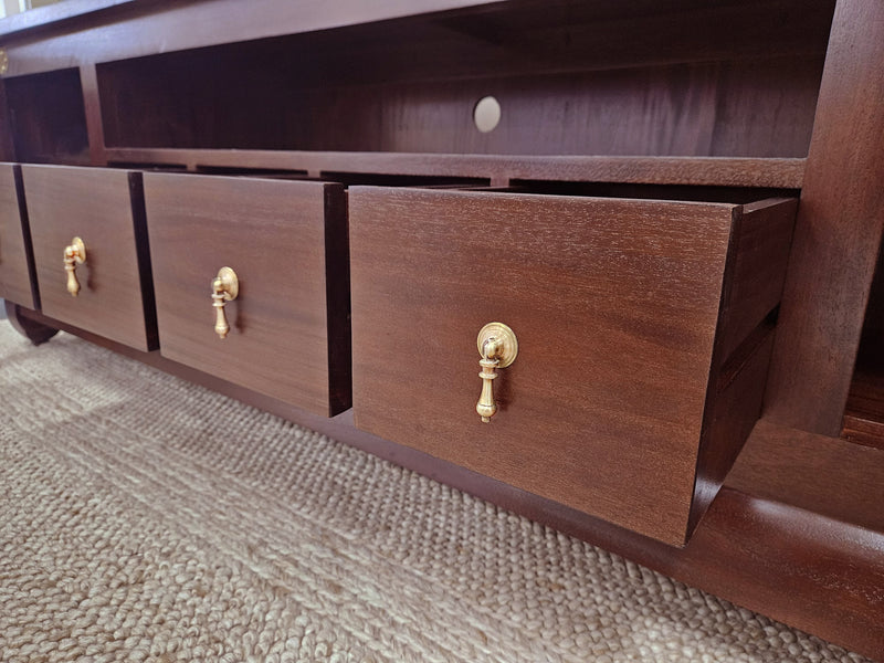 - Handcrafted: From SVLK-certified solid mahogany timber, this tv stand exudes opulence and sustainability, making it a truly remarkable addition to your space.