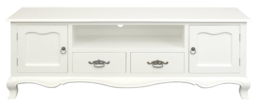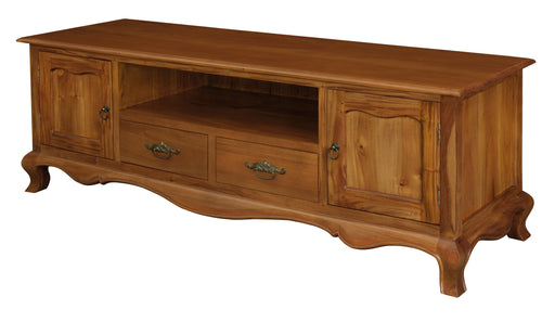 Embrace the charm of classic French Provincial style with our 2 Door 2 Drawer Entertainment Unit. Crafted from solid mahogany timber, this piece br...