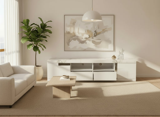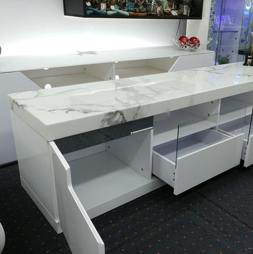 In stock / leaves warehouse in 2 - 5 business days Key Features Modern white or black Tv stand Can be ordered in 180cm or 200cm Length Top frame...