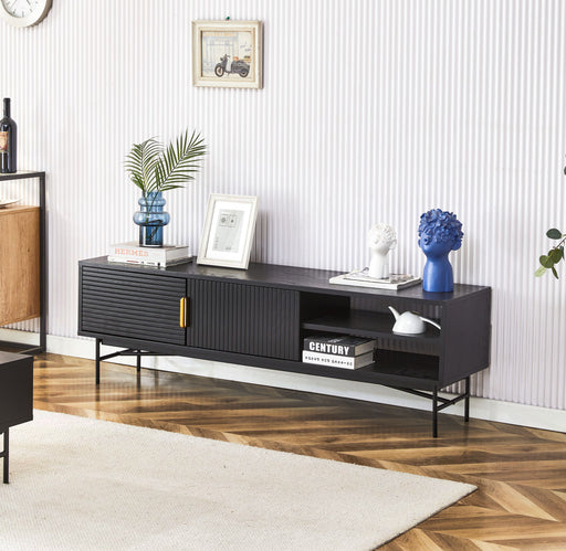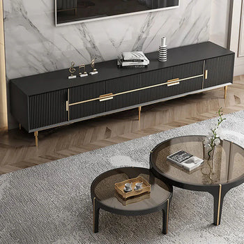 Experience a bold, luxury look with this Charcoal Black Tv Entertainment Unit. With a sleek, charcoal black finish and high-end gold accents, it's ...