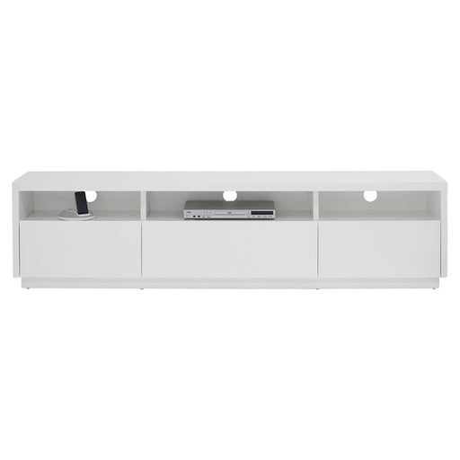 Features Crafted from engineered board offers sleek modern profile in white finish Three drawers, open media shelf with rear cable access ensures...