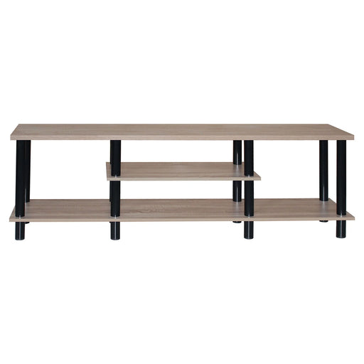 Features two drawers and one cabinet Keep your living room clutter-free with the Clarence Oak TV Stand. This stand features two spacious drawers an...
