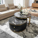 Experience versatility and elegance in your decor with the 2 Piece Black Amari Round Coffee Table Set. This set offers adjustable tables that optimize your living space, and comes with 2 drawers for convenient storage of magazines, remote control, toys, and other items. Made with an MDF frame, sintered stone top, and stainless steel base, this coffee table set is both sturdy and stylish..