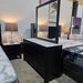The Europa Bed Frame features a sleek contemporary finish, elegant fluted panels and a gas lift storage mechanism. The marble-like stone inlay detailing on the bedside and dresser surfaces adds a premium touch to this functional bedroom piece.