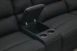 • Built-in storage console with flip-top lid and dual cup holders for added convenience