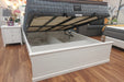 The Vanice Queen Bed combines practical functionality with stylish ivory white. The bedroom features a bedhead with multiple storage compartments, making it an ideal addition to your bedroom.